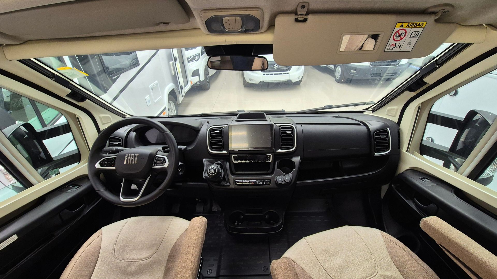 Montada sobre chasis FIAT Euro 6 de 140 CV con cambio manual de 6 velocidades, la Mileo 263 asegura una conducción potente, suave y estable. Su eje trasero ensanchado, llantas de aleación de 16”, ABS + ESP, Traction Plus y control de crucero con limitador elevan la seguridad al máximo nivel. La conducción se complementa con retrovisores eléctricos calefactados, sensor de lluvia, faros antiniebla delanteros, sensor de fatiga, y asistente de mantenimiento de carril, entre otros.