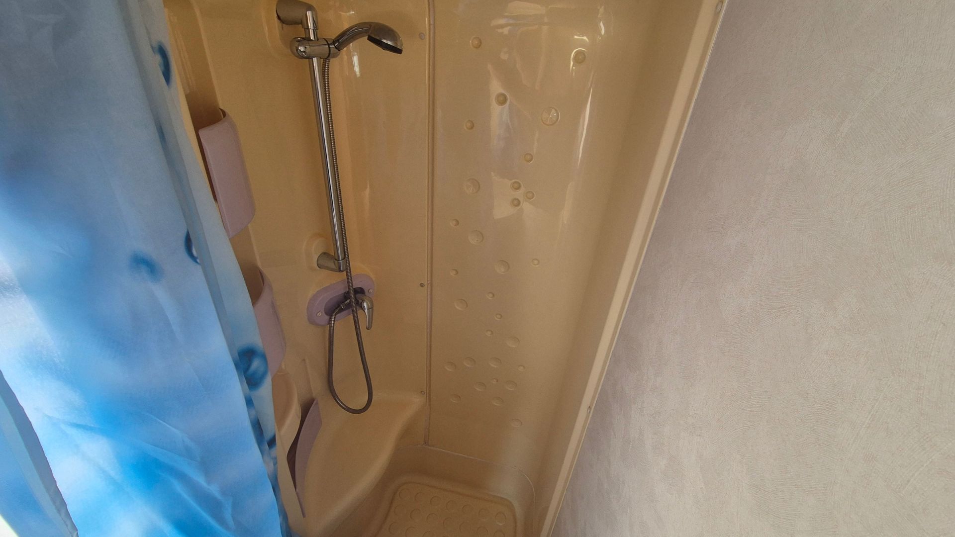 Baño con ducha separada por cortina: garantiza privacidad y comodidad sin ocupar demasiado espacio.