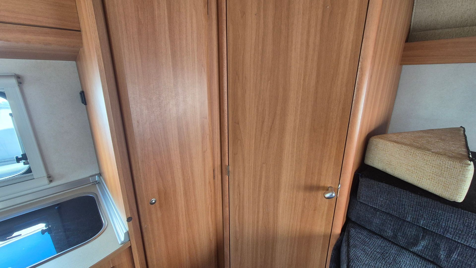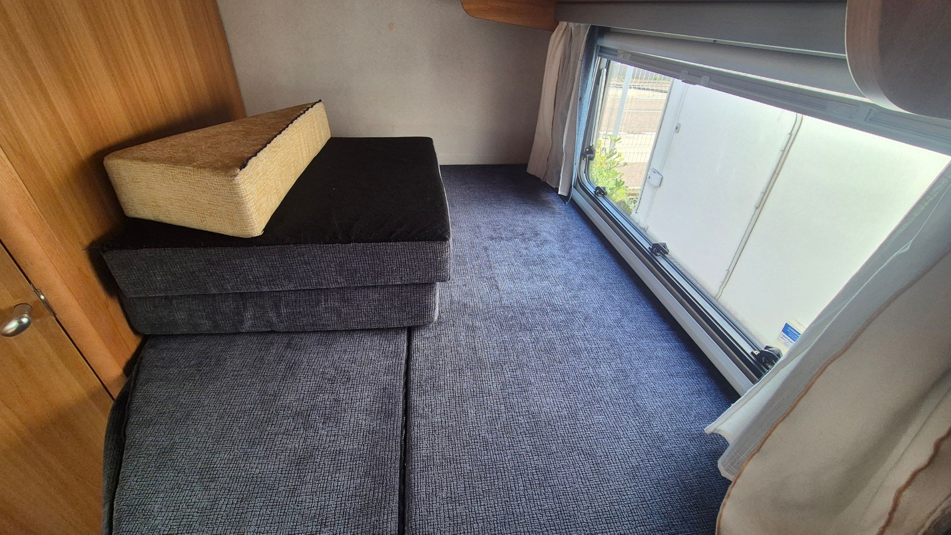 Una de las características más destacadas de esta autocaravana de segunda mano es su cama francesa, una solución práctica que optimiza el espacio sin sacrificar la comodidad. A esto se le suma un comedor convertible en cama individual, lo que permite aprovechar al máximo cada metro cuadrado del habitáculo.