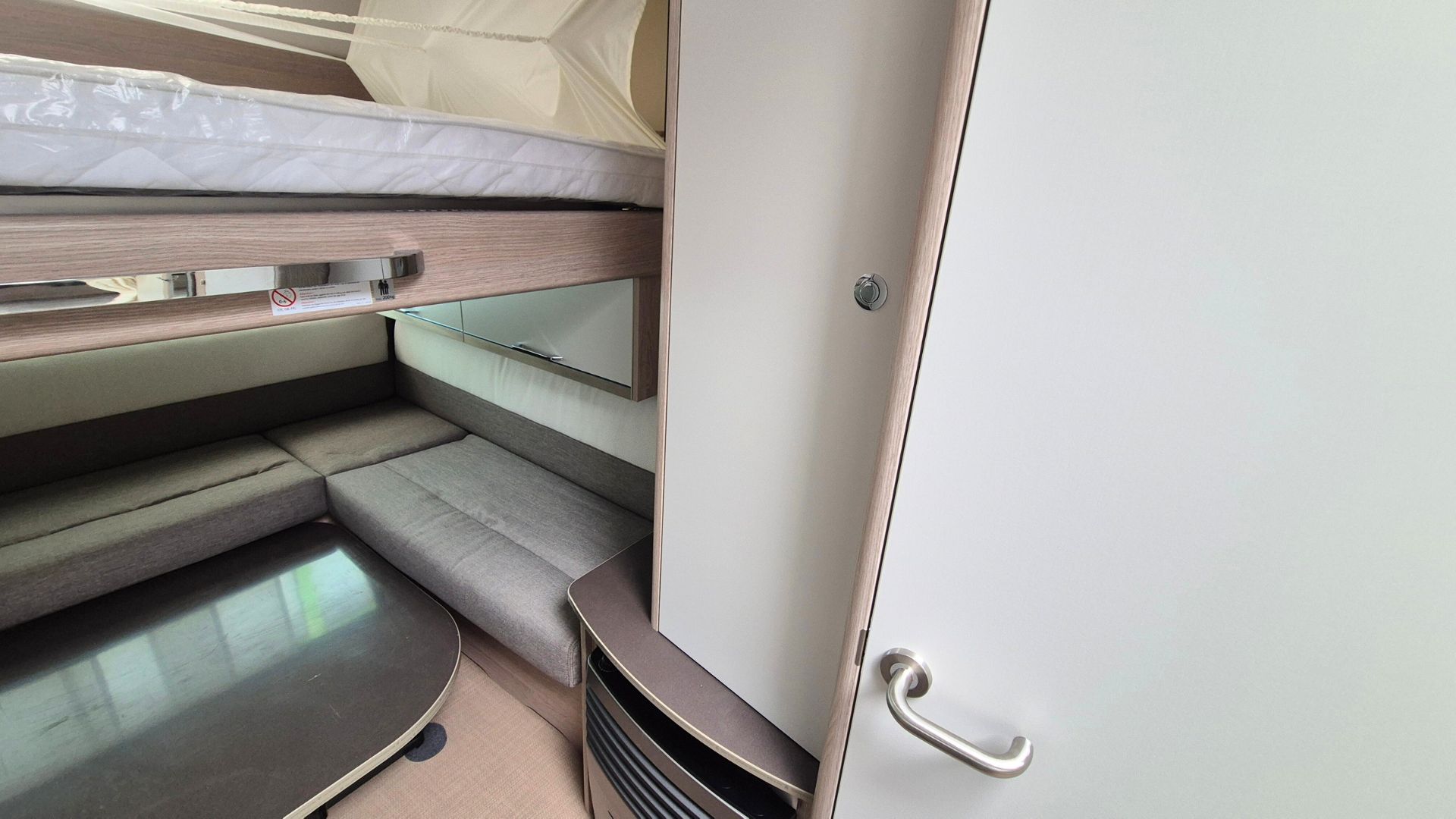 El depósito de agua limpia tiene una capacidad total de 44 litros, incluyendo el boiler, y un suministro de 15 litros disponible incluso durante el viaje. Además, dispone de espacio para una botella de gas de hasta 11 kg y múltiples zonas de almacenaje bien distribuidas.