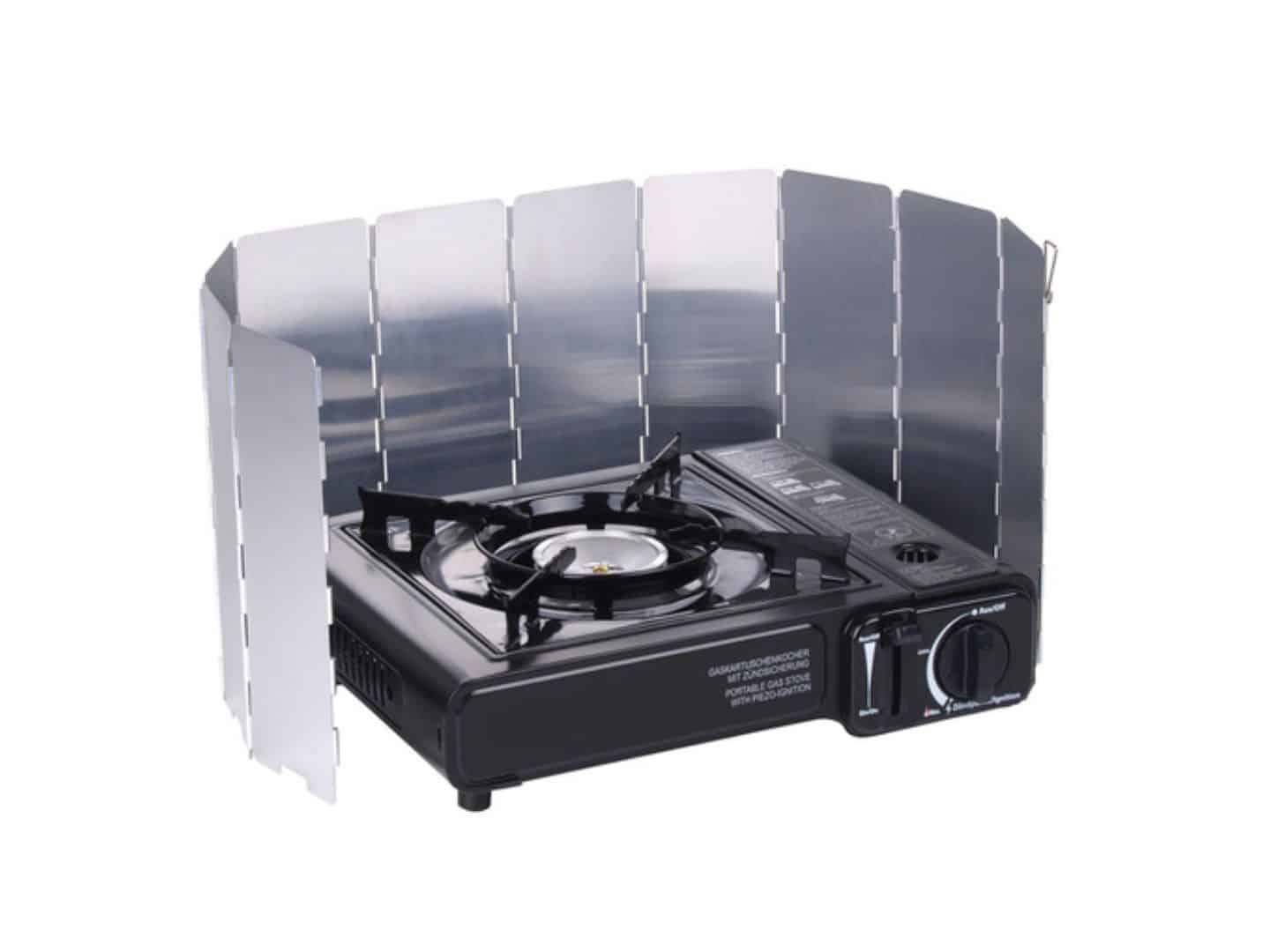 Cortavientos plegable de aluminio para hornillos.