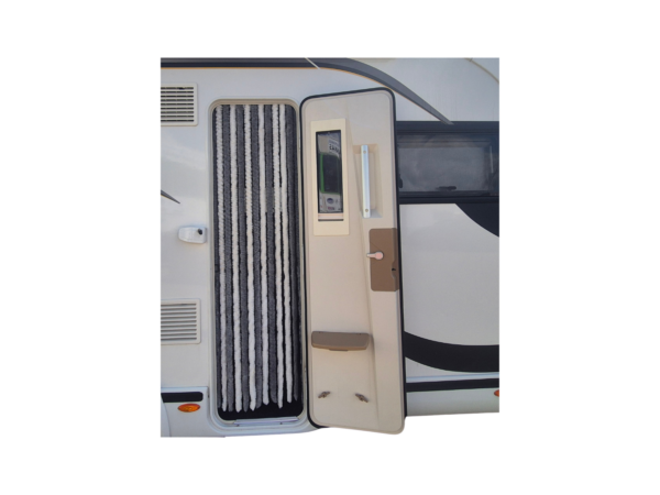 Estas cortinas están listas para colocar directamente en la entrada de tu caravana o camper, sin necesidad de herramientas especiales ni instalaciones complicadas. Y lo mejor de todo: son recortables, lo que significa que puedes adaptarlas a la medida exacta de tu puerta (hasta 560 x 1850 mm), asegurando un ajuste perfecto.