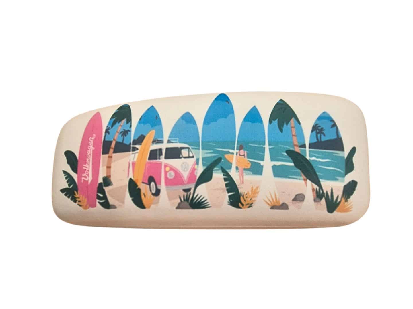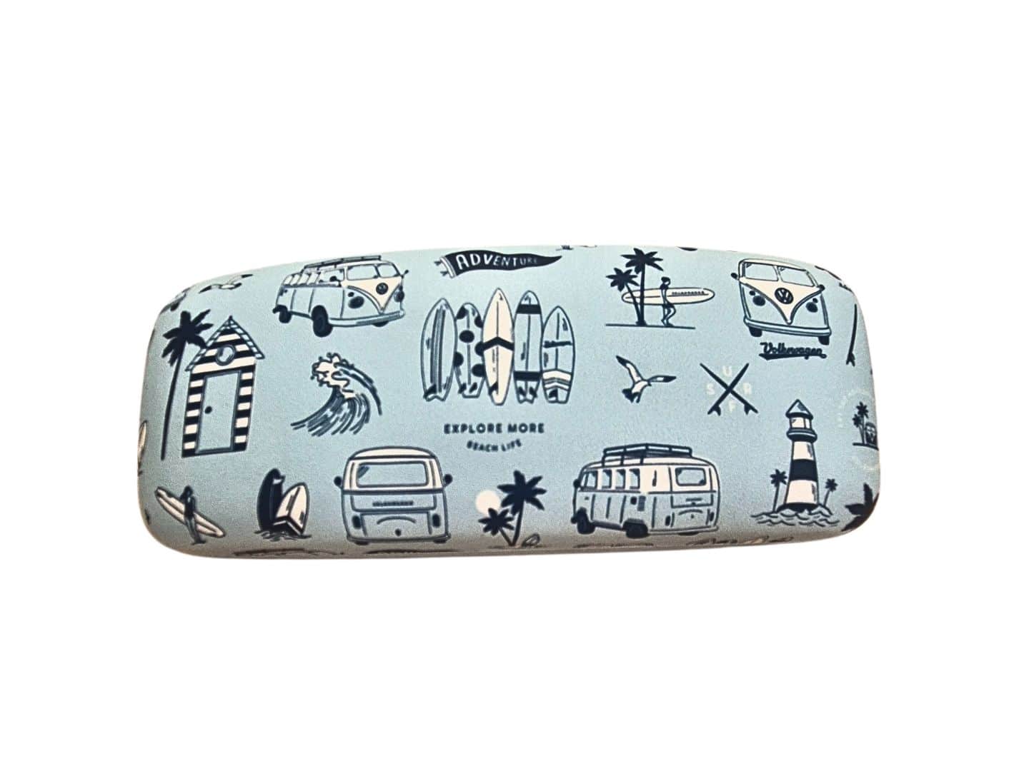 Esta funda de gafas Volkswagen es perfecta para quienes buscan un accesorio práctico y estiloso. Gracias a sus diferentes modelos, puedes elegir la que mejor se adapte a tu estilo: elige la funda en azul o rosa para un look más clásico, o decántate por los modelos de playa o tablas de surf si prefieres una vibra más veraniega y aventurera.
