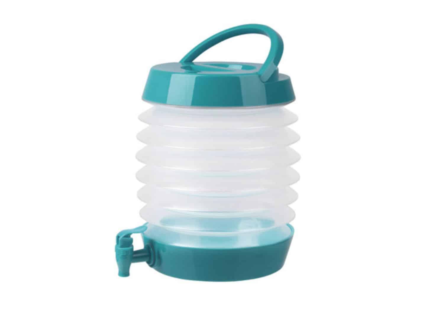 Garrafa plegable:práctico dispensador de agua para todas las vacaciones en camping y en casa. Plegable de forma compacta. Con grifo y asa de transporte.