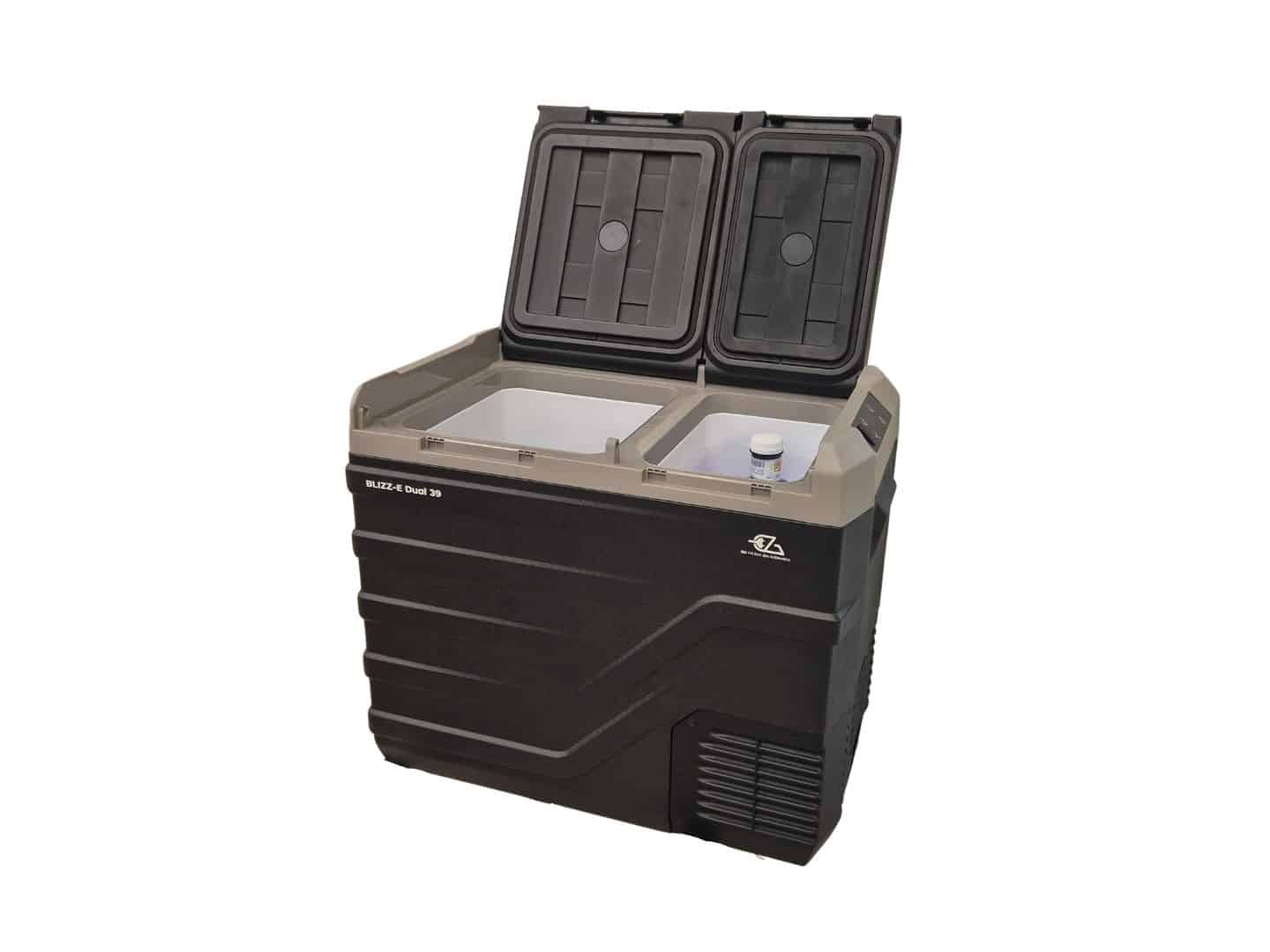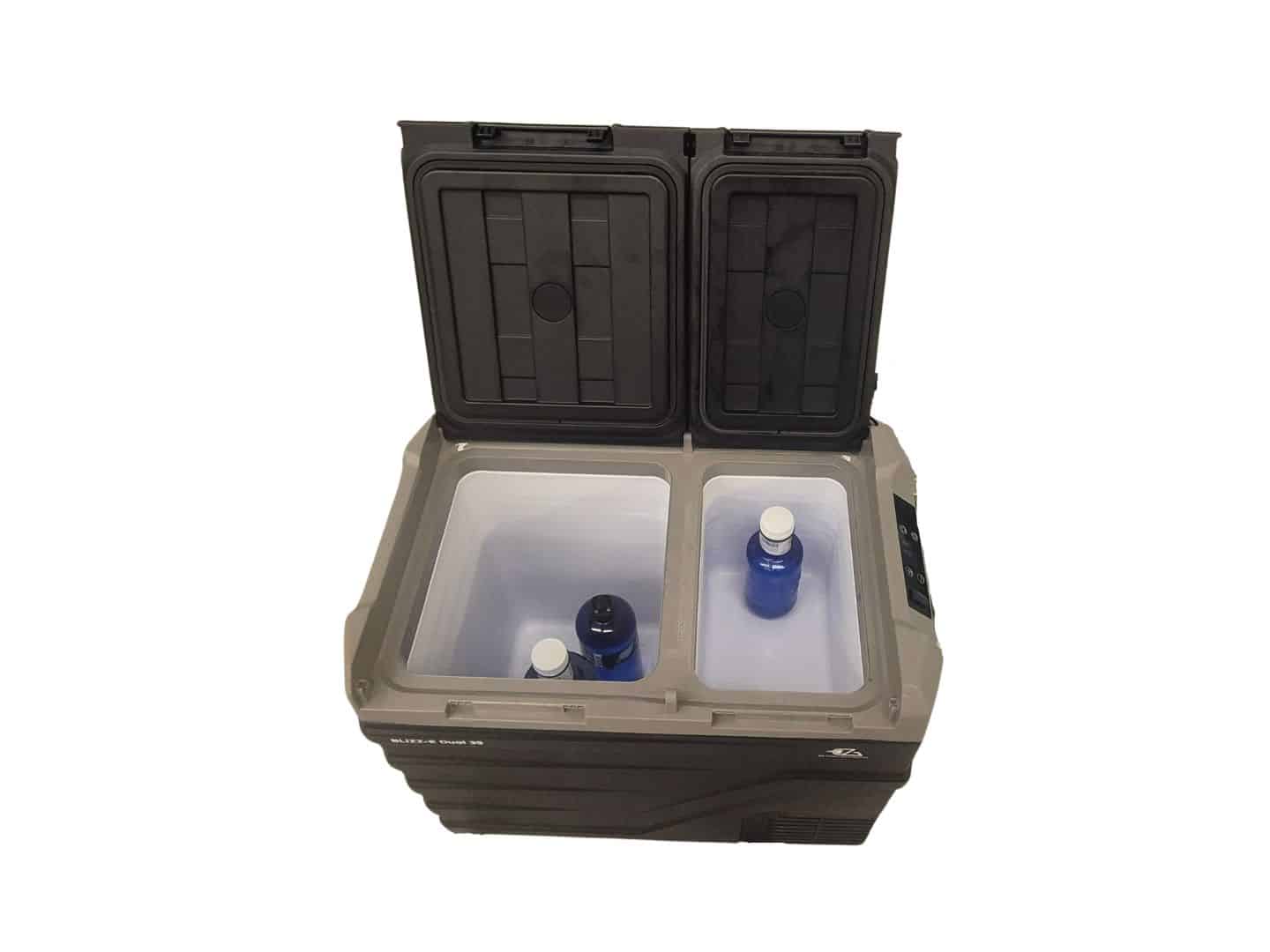 La Blizz-E Dual 39L cuenta con dos compartimentos independientes, cada uno con su propia puerta y control de temperatura. Esto significa que puedes usar uno como refrigerador y el otro como congelador, o adaptar ambos a tus necesidades. Esta versatilidad te permite llevar desde bebidas frías hasta alimentos congelados en un solo dispositivo compacto.