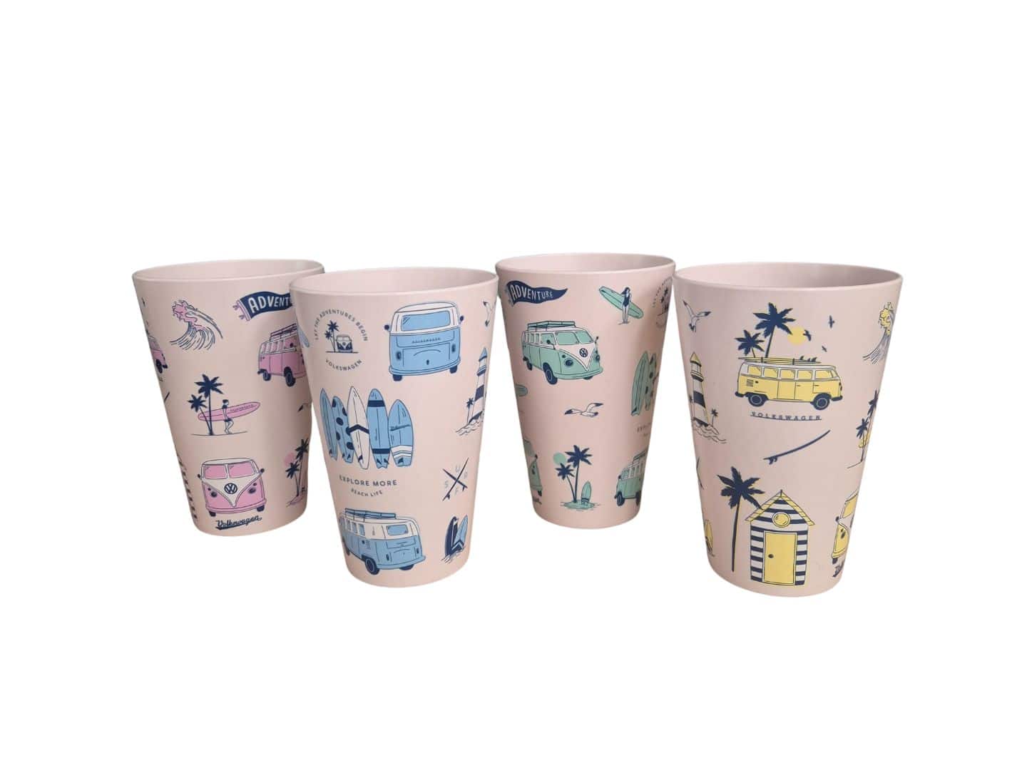 Set de 4 vasos Volkswagen para camping: ideales para tus aventuras al aire libre y para niños