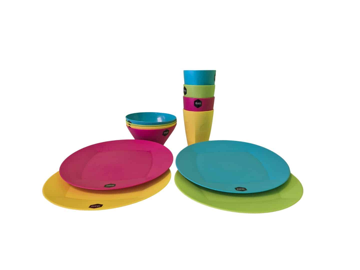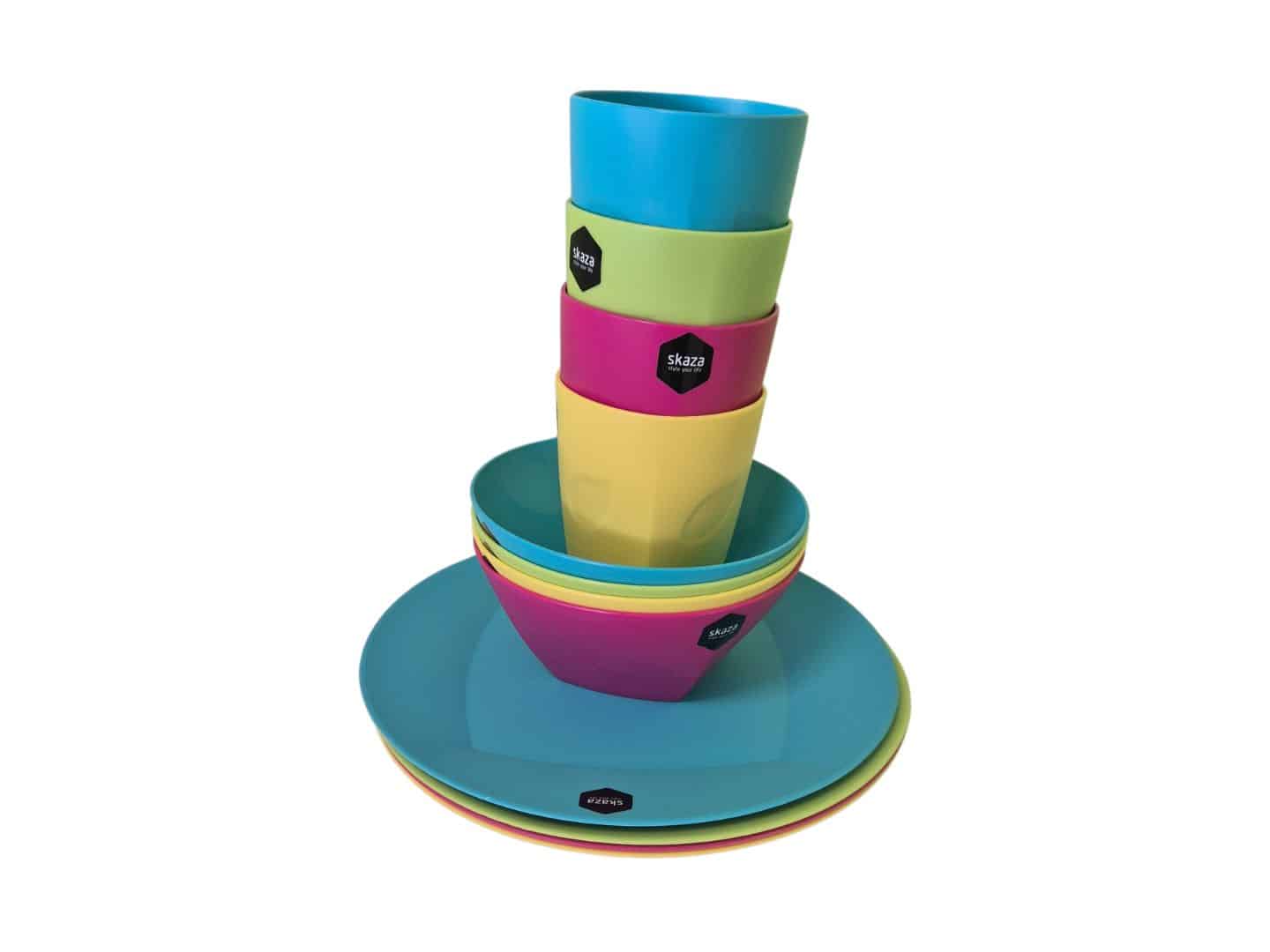 Vajilla de colores Skaza para autocaravanas, caravanas, campers y para cualquier escapada de picnic.