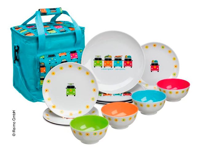 Vajilla de melamina Camper Smile, 12 piezas, incl. bolsa de refrigeración 16l