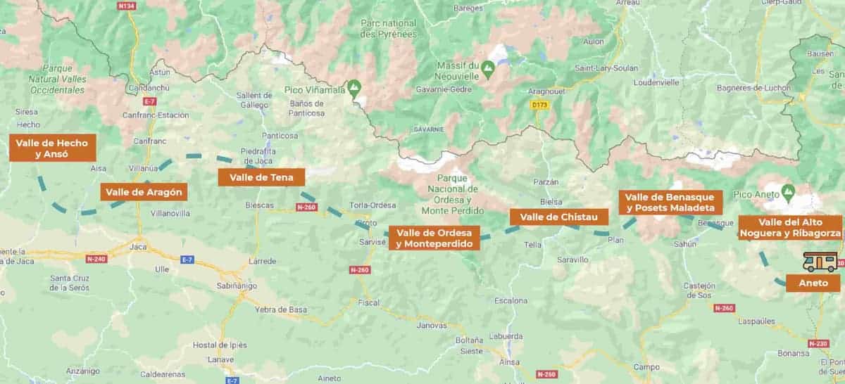 Nuestra ruta por los Pirineos Aragoneses se va a basar en recorrer de este a oeste los siete valles que componen el Pirineo Aragonés. Descubre la joya aragonesa de la mano de una autocaravana: unión perfecta entre libertad y naturaleza.